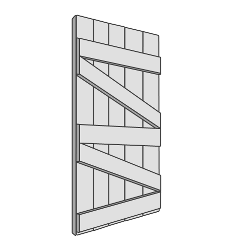 • Paint the rear face of the door next using the 2" paintbrush, first covering each vertical panel, and finishing with the ledges and braces.