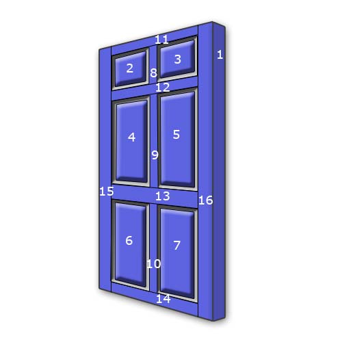 • Then paint the faces of the door in numerical order as shown in the diagram below, using the 2” paintbrush.