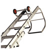 Roof ladders are specifically designed to be rolled on their wheels up a roof without damaging the tiles. There is also a large hook on the other side of the ladder which is positioned on the top ridge to hold the ladder in place and prevent it from slipping downwards.